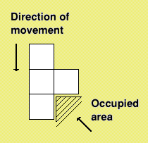Similarly, moving left or right alters the X coordinate by 1. But these are peculiar shapes with odd blocks here and there - how do you test for a collision like the one shown here?