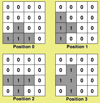 H%(6,3,3) = Y offset | | | | | the 4 blocks (Left to | | right) 0 1 2 3 | | | shape orientation | Which shape